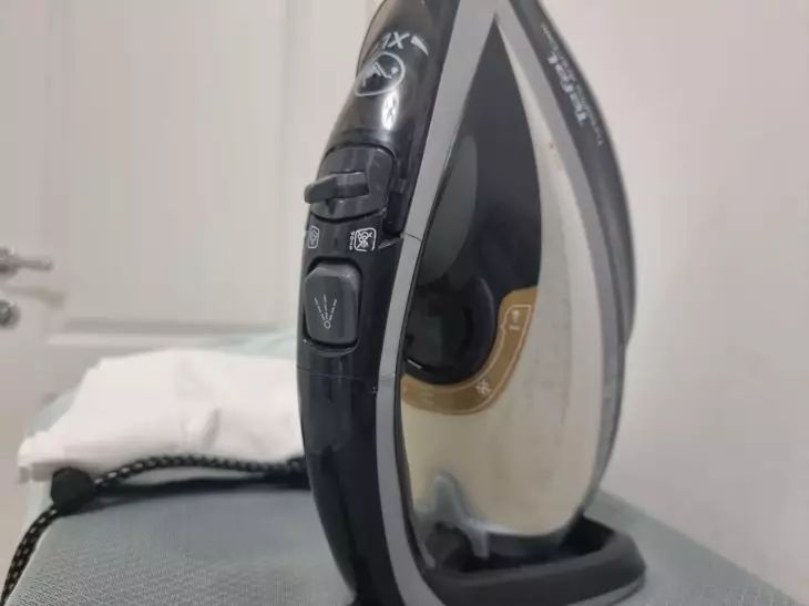 Держите утюг на расстоянии 5–10 см от ткани. Это позволит гладить одежду быстро и не повредить ее.