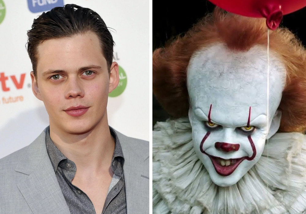 - Пеннивайз – Билл Скарсгард: В образе этого зловещего клоуна с экрана триллера «Оно» Стивена Кинга, превращение Скарсгарда было поразительным. Простая белая краска в сочетании с уникальной техникой управления зрачками сделала его безумным и запоминающимся персонажем, которого боялись даже на съемочной площадке.