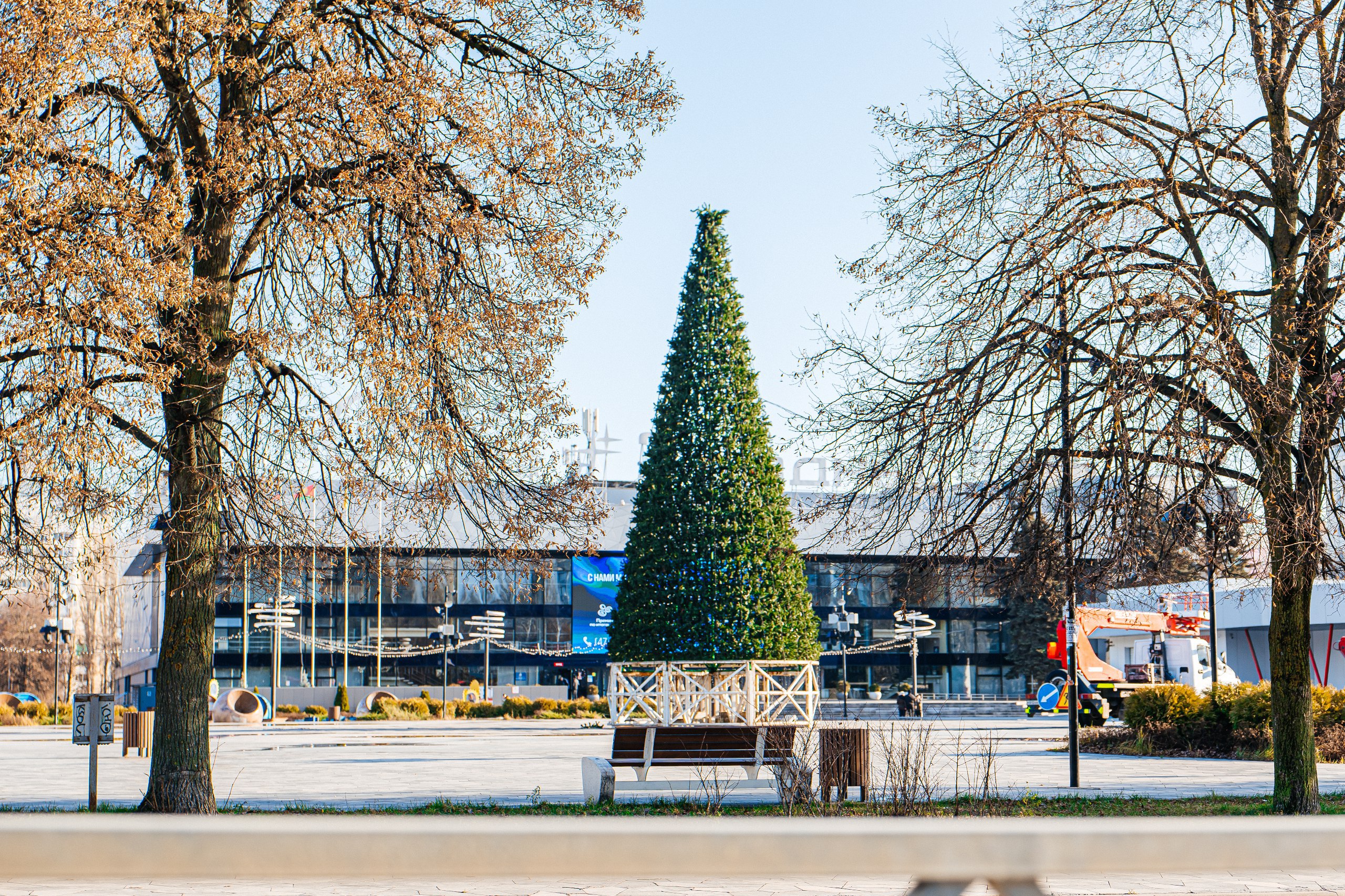 Возле дворца спорта «Звёздный» установили новогодний символ – зелёную красавицу