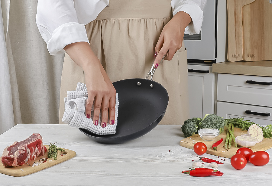 - Ручная стирка: Лучше всего мыть посуду вручную с мягким моющим средством, чем в посудомоечной машине, что может сократить срок службы антипригарного покрытия.