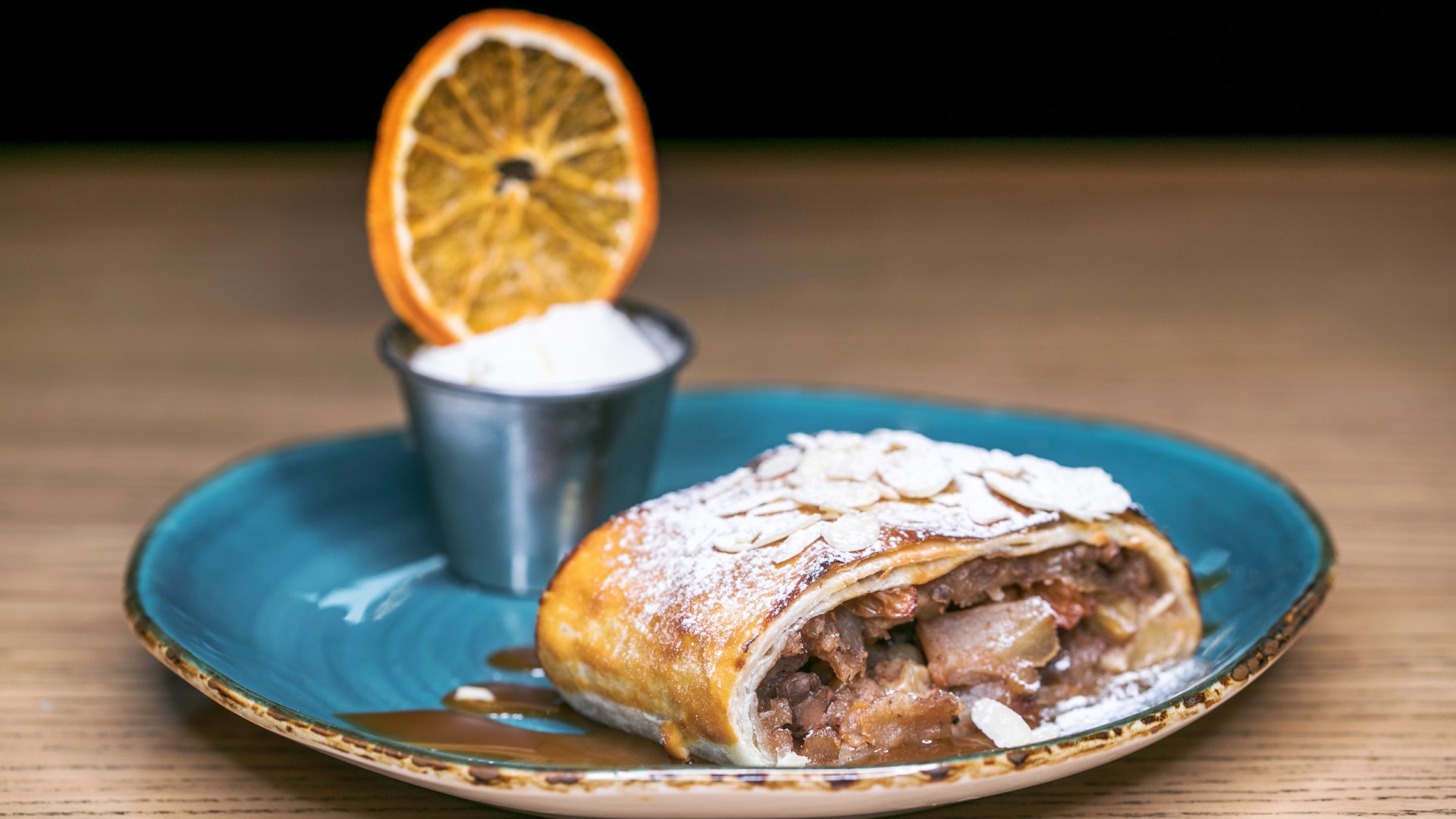 «Посыпьте фрукты сахаром и корицей. Сложите тесто вдоль в два слоя. Получится длинный рулет. Заверните края внутрь, чтобы начинка не вытекла во время выпекания.
