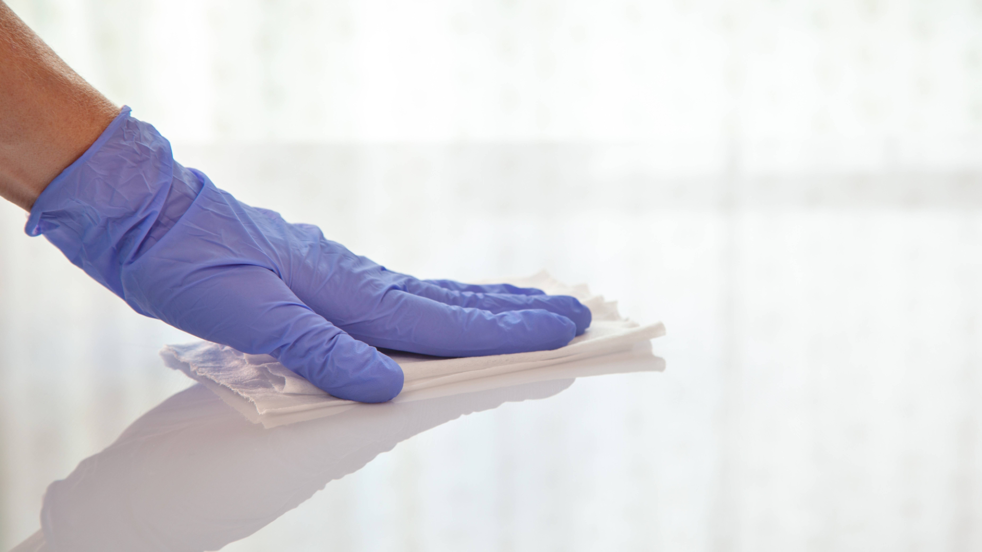 Из ванной комнаты выносят все полотенца, гели для душа, халаты и другие аксессуары. Затем стены, пол, сантехнику опрыскивают чистящим средством.