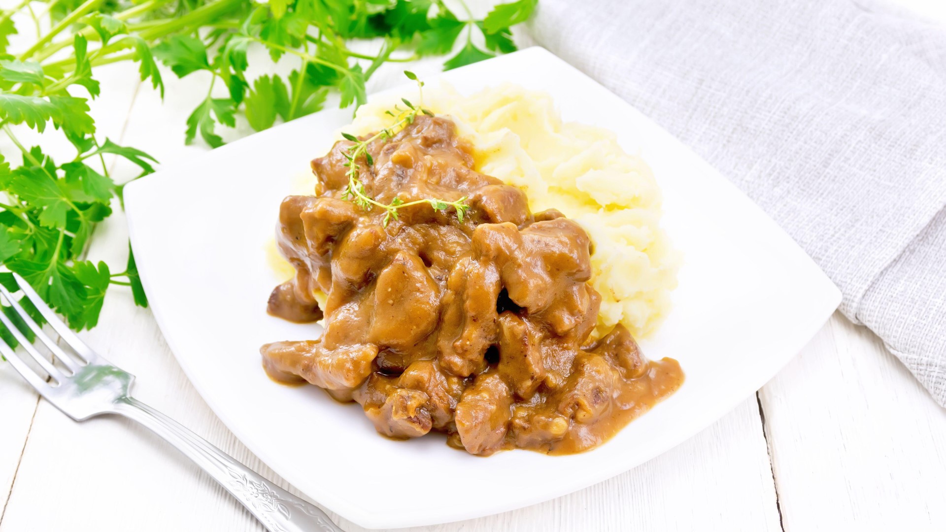 Доведите блюдо до кипения и тушите на маленьком огне 30-40 минут. В самом конце посолите и поперчите. Гуляш как в детском саду готов, подавайте его с любимым гарниром, пишет портал 1000menu.