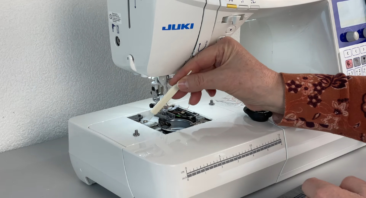 - Горизонтальный челнок: очистите шпуледержатель и сам челнок, избегая чрезмерного давления.