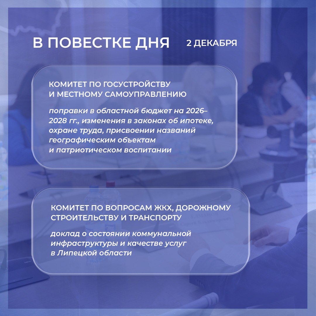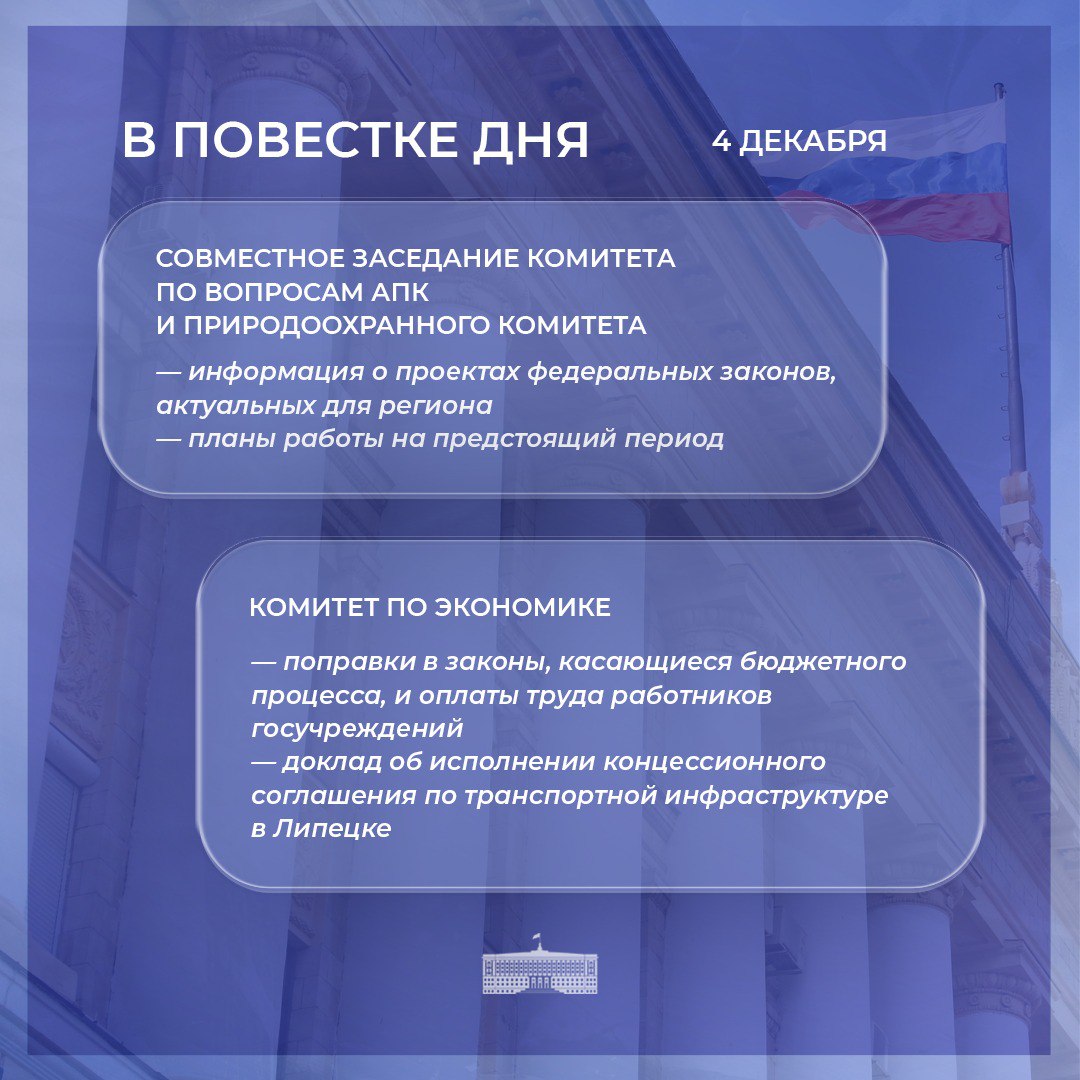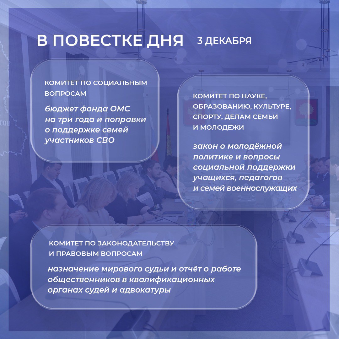 3 декабря в 10:00 – комитет по социальным вопросам.