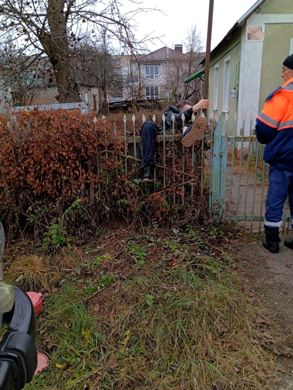 Между кольями забора застрял липчанин на улице Минина