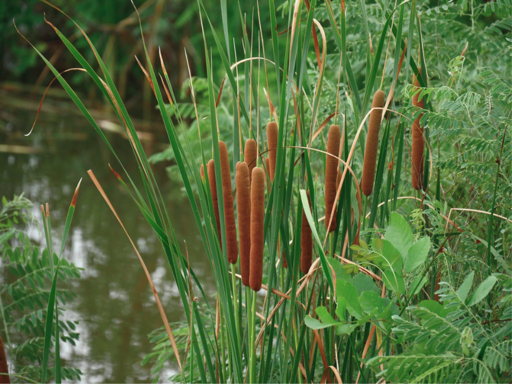 - Рогоз встречается по берегам водоемов, часто формируя густые заросли.