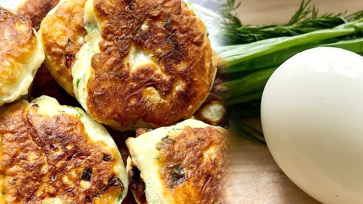 Не забудьте добавить мелко нарезанные яйца и лук в тесто, а затем дайте ему настояться около 10–15 минут. За это время сода сделает своё дело и тесто станет особенно воздушным.