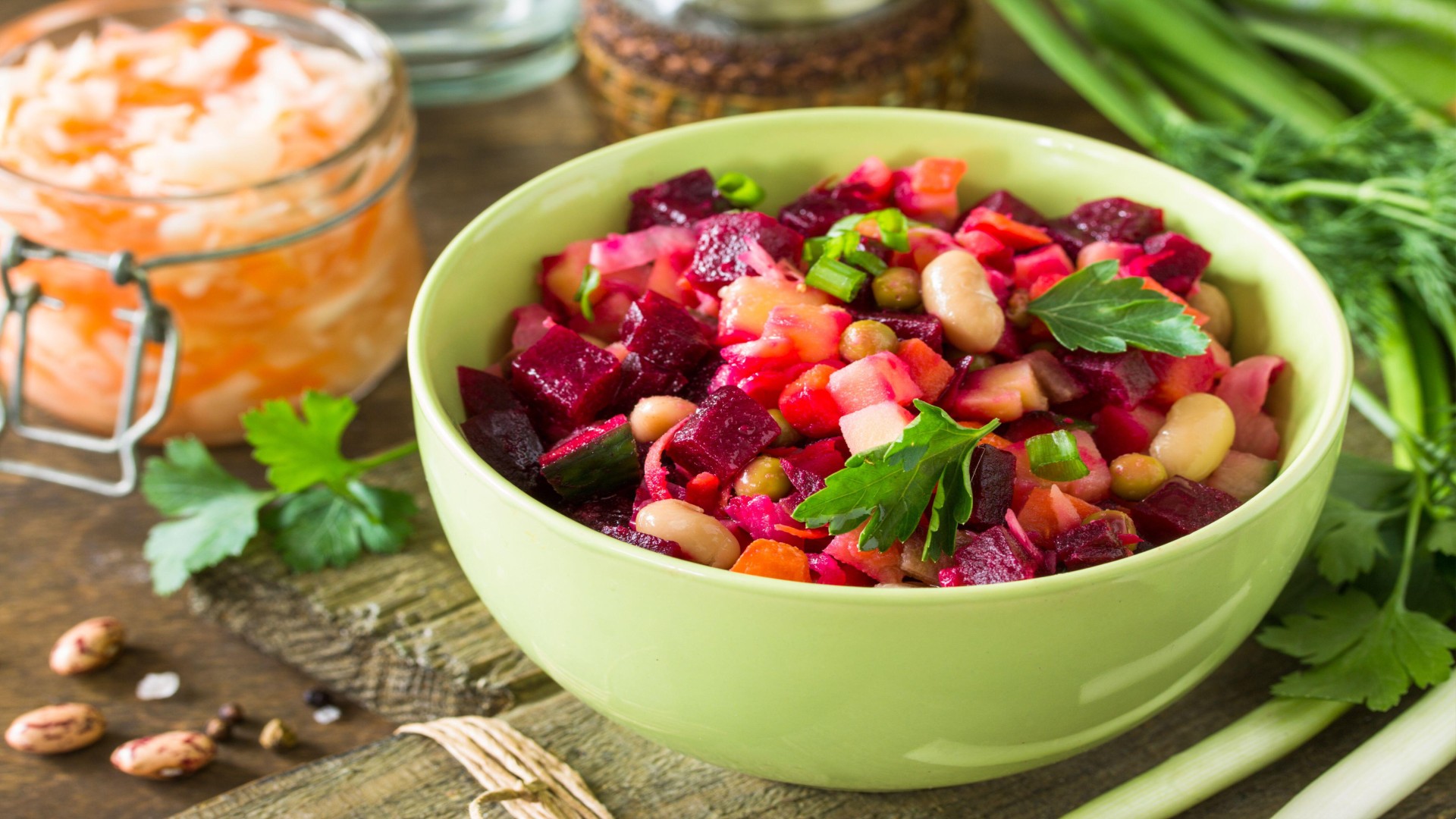 Знаменитый свекольный салат в новом исполнении оценят все домочадцы. Тем более что по вкусу он ничуть не хуже обычного, а витаминов в нем — гораздо больше. Да и времени на готовку уйдет совсем не много.