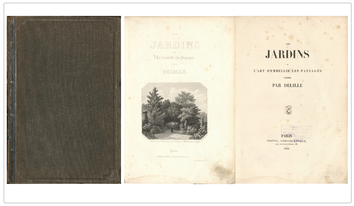 "Сады, или искусство украшать пейзажи", опубликованная в 1782 году, стала бестселлером своего времени. Делиль не был профессионалом в области ландшафтной архитектуры; он был поэтом, который разработал правила для создания гармоничных и природных садов, возражая против строгих формальных стилевых решений.