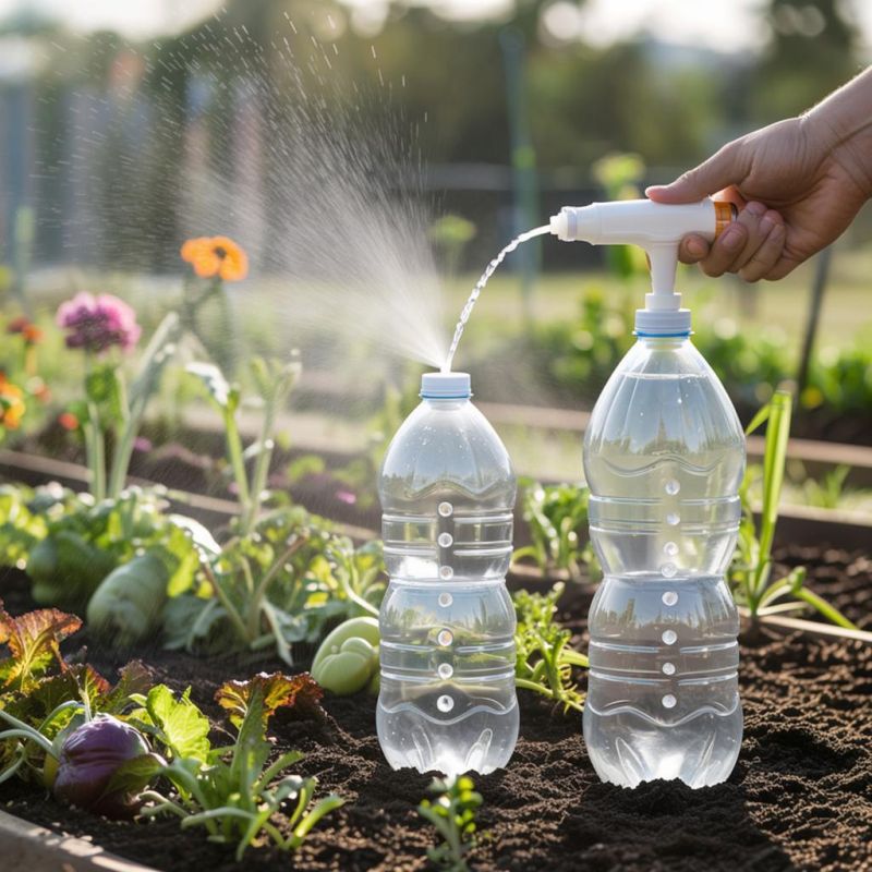 Этот распылитель становится многофункциональным инструментом. Его можно держать в руках или подвесить над растениями, организовав капельный полив. Для этого бутылку следует аккуратно перфорировать и подвесить вверх дном. Вода будет постепенно стекать, обеспечивая постоянное увлажнение. Также легко вкопать бутылку рядом с корнями влаголюбивого растения, например, томатов, для более эффективного полива.
