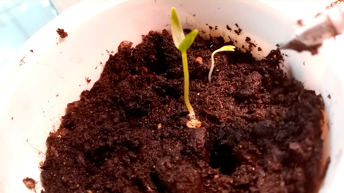 Через четыре дня в самодельном инкубаторе для семян появилась первая жизнь: семечко проросло, выпустив в воздух корешки и петельку с шапочкой. Температура в баночке поддерживалась на уровне 28°С, а влажность позволяла семенам чувствовать себя как дома. Оригинальное семечко стало первым из группы, собравшейся на пиршестве растительности. Его пересадка в отдельный горшок прошла с успехом!