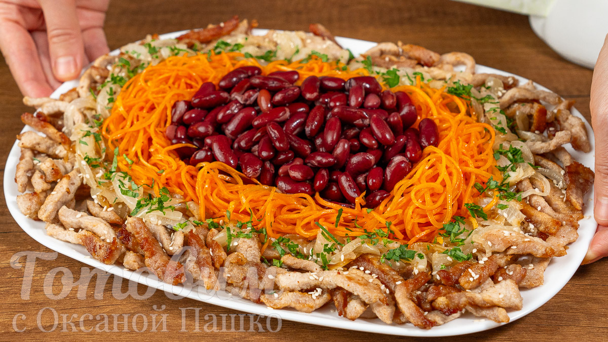 Салат с мясом и фасолью «Сытый муж» — это не просто обычное блюдо, а настоящий кулинарный шедевр, который подойдет как для семейного ужина, так и для праздничного стола. Он порадует всех своей сытностью и ярким вкусом. Нежное обжаренное мясо гармонично сочетается с хрустящей пикантной морковью по-корейски и сладким жареным луком. А фасоль добавляет дополнительную насыщенность, делая это блюдо незаменимым для утоления голода.