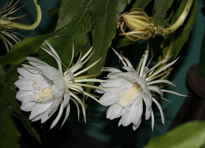 Царица ночи, известная как Epiphyllum oxypetalum, выделяется на фоне других растений своей уникальной красотой и таинственностью. Эти зтойные белоснежные цветы с обворожительным ароматом, напоминающим ваниль, раскрываются исключительно после захода солнца, придавая растению атмосферу волшебства.