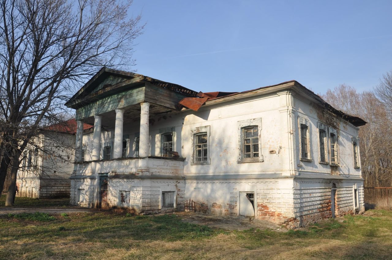 «Главный дом усадьбы Скуратовых, Сергеевых» в Павловке Добринского округа. Построен в 19 веке в стиле позднего классицизма. Считается редким образцом дворянской усадьбы.