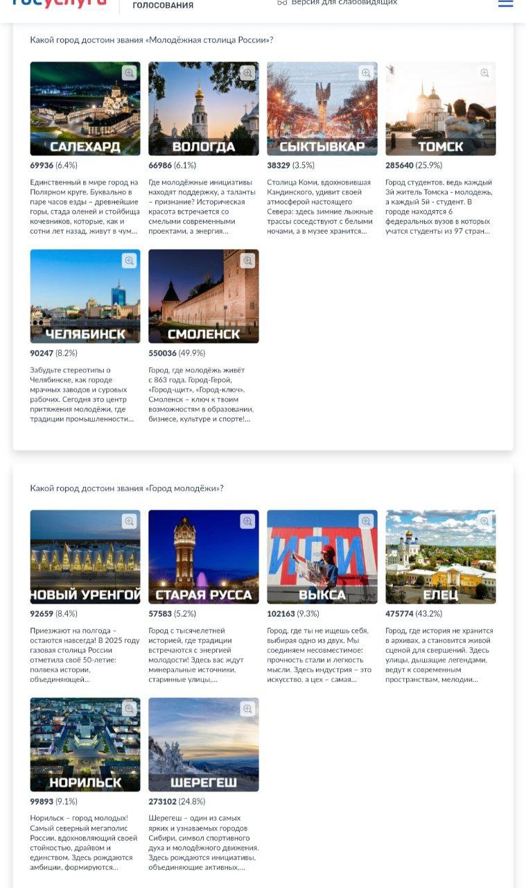 Елец и Смоленск уверенно лидируют в голосовании за звание «Города молодёжи» и «Молодёжной столицы».
