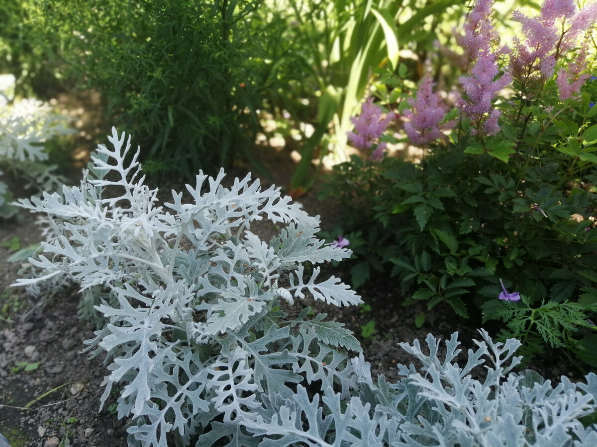 Циннерария демонстрирует свой рост с фееричным блеском серебристых листьев. Этот цветок превращает сад в яркое царство природы.