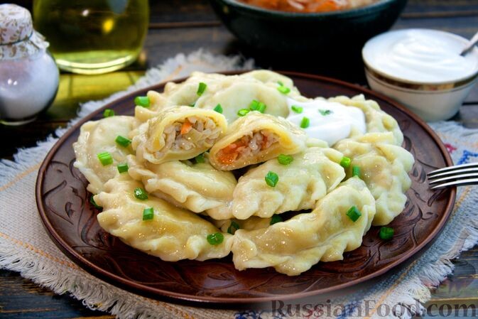 - Вареники с гречкой и квашеной капустой: это не только бюджетно, но и полезно. Квашеная капуста придаёт начинке свежесть и хрусткость.
