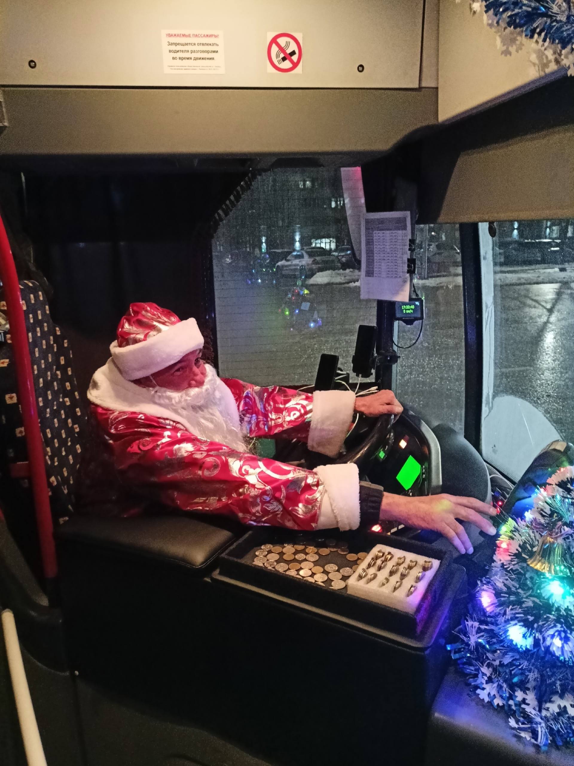 Водитель одного из городских маршрутов приоделся в костюм новогоднего волшебника и создает праздничное настроение!