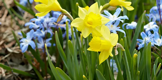 - Весенние луковичные: Например, сочетание ярких желтых нарциссов 'Little Gem' с нежной хионодоксой не только украсит ваш сад, но и будет радовать глаз ранней весной. Эти растения высаживают осенью в хорошо дренированную почву, чтобы избежать гниения луковиц.