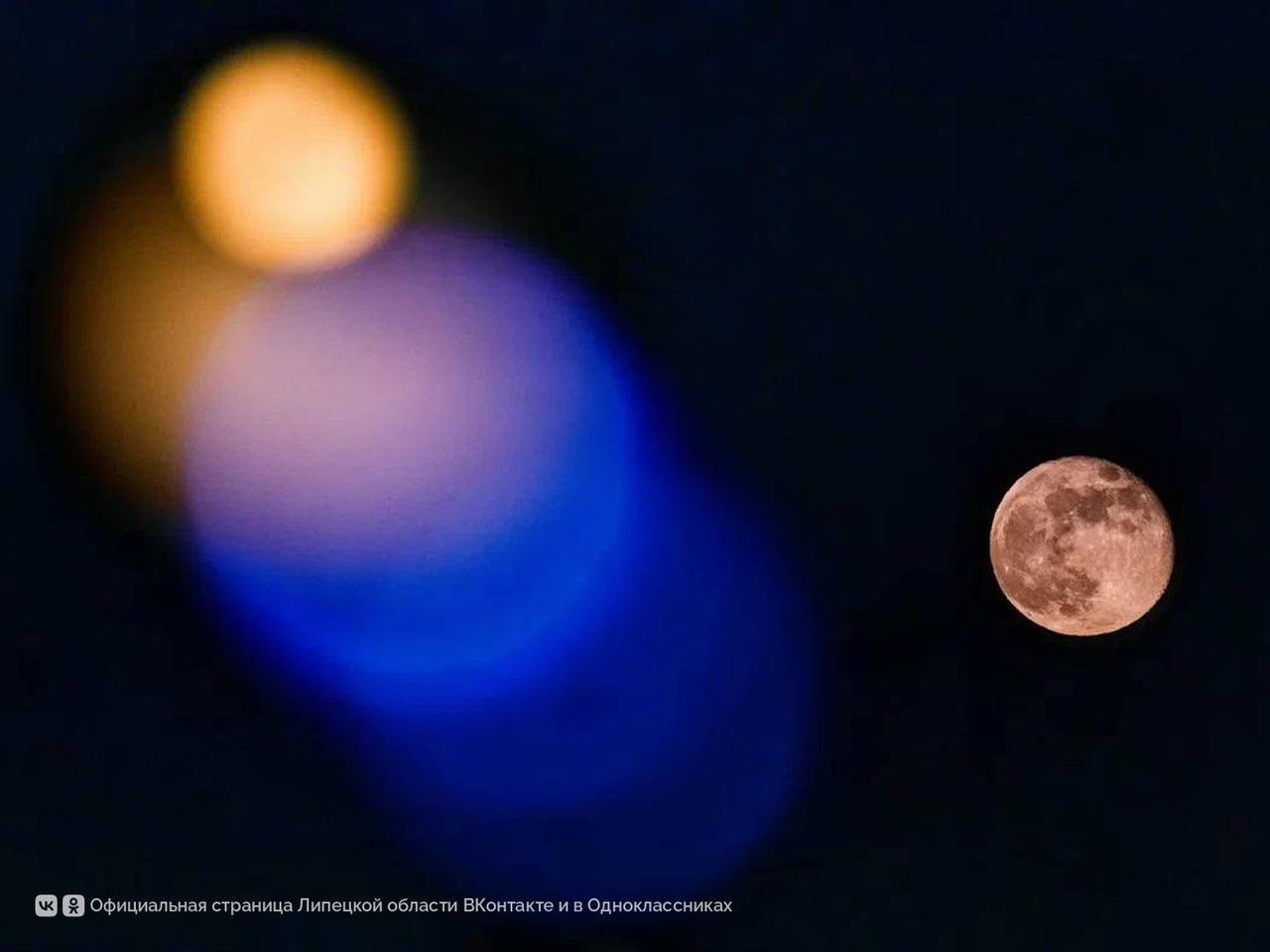 Рыжеватая луна осветила небо над Липецкой областью, превратившись в почти идеально ровный круг.