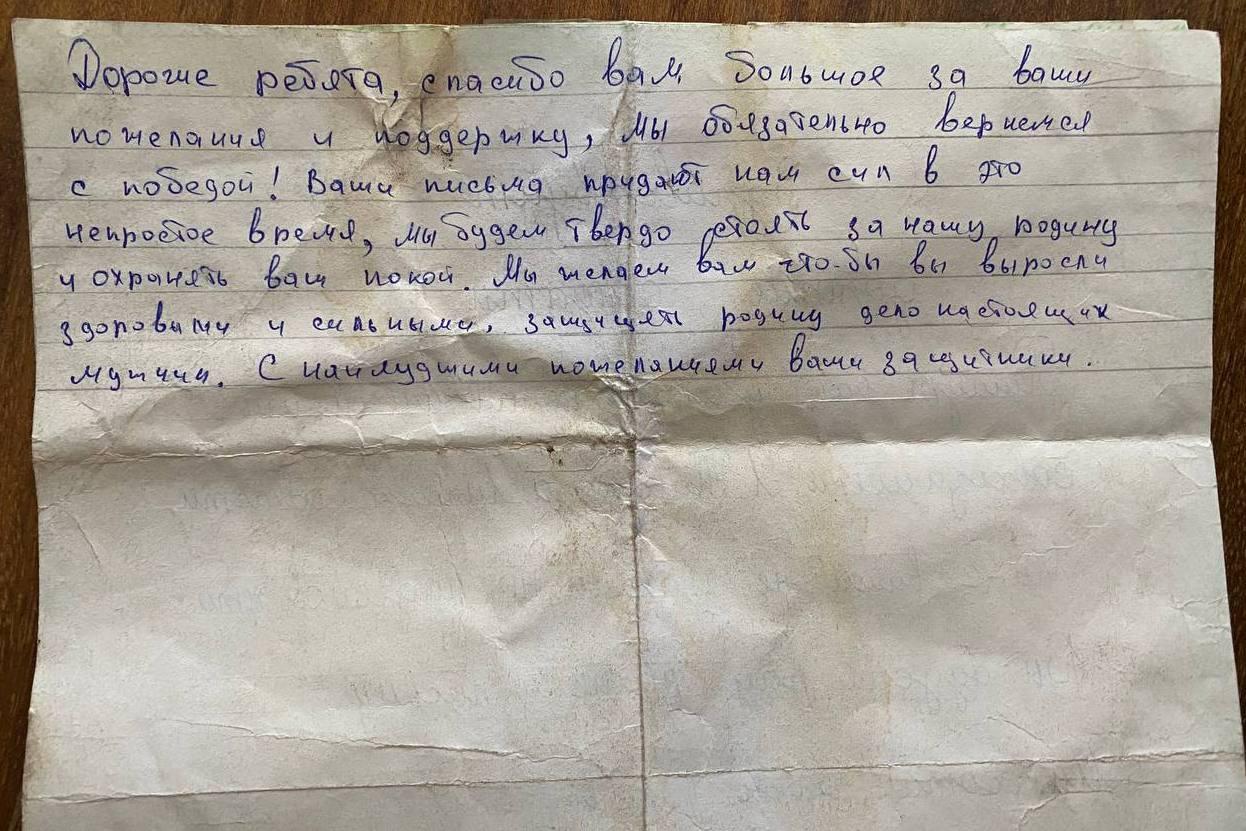 Военнослужащие написали письмо с благодарностью за переданную помощь. Посылку с необходимыми вещами и трогательными детскими посланиями отправляли из посёлка Лев Толстой в Липецкой области.