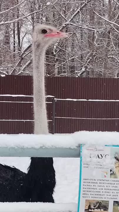 Африканские страусы из Липецкого зоопарка прекрасно себя чувствуют даже в снежную зиму