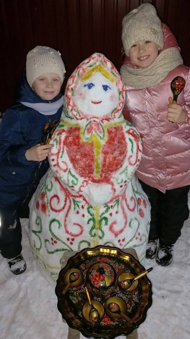 Расписанную под гжель снежную бабу, красавицу в лисьей шубе, крестьянку в народном костюме из снега слепили школьники лицея №3 Липецка. Каждый год в учреждении проводится тематический фестиваль. В этом году он посвящён Году единства народов России.