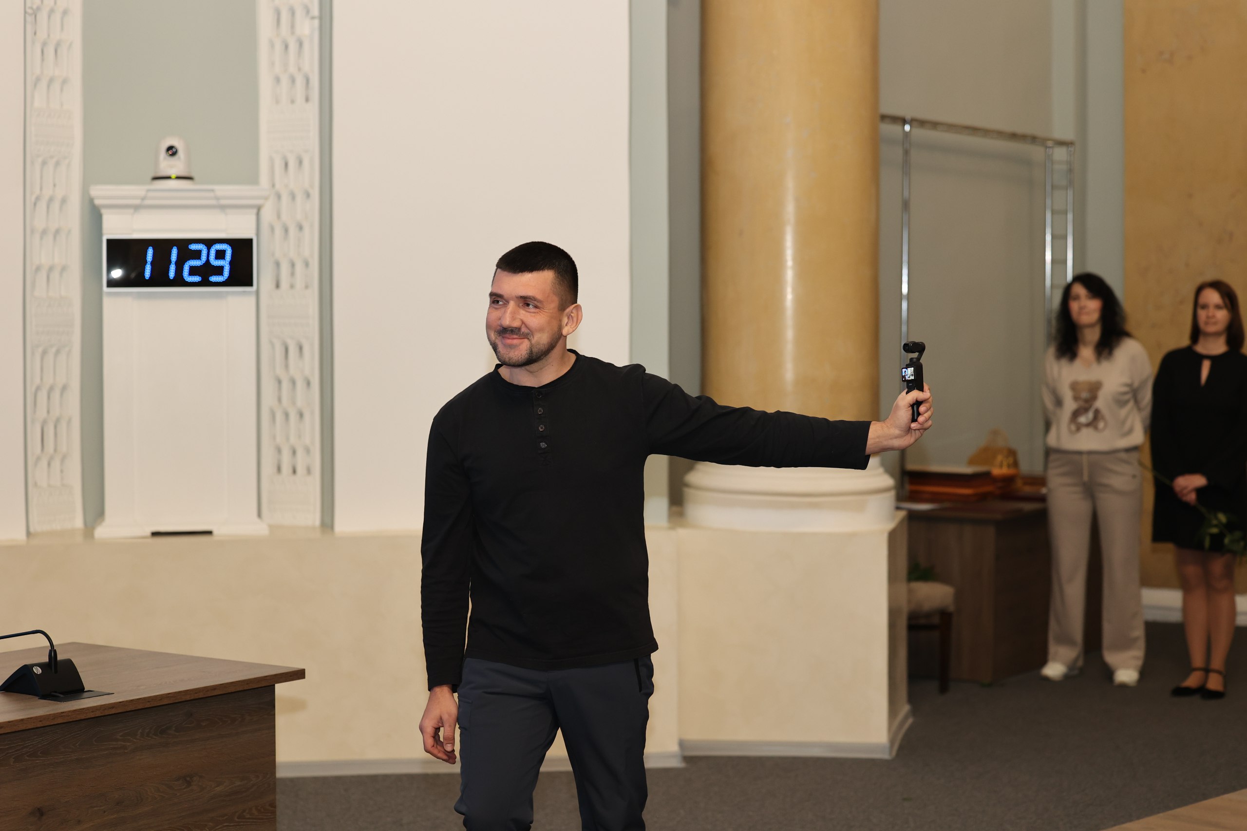 В Большом зале Правительства от имени регионального парламента представителей СМИ поблагодарил зампредседателя облсовета Владимир Богодухов.