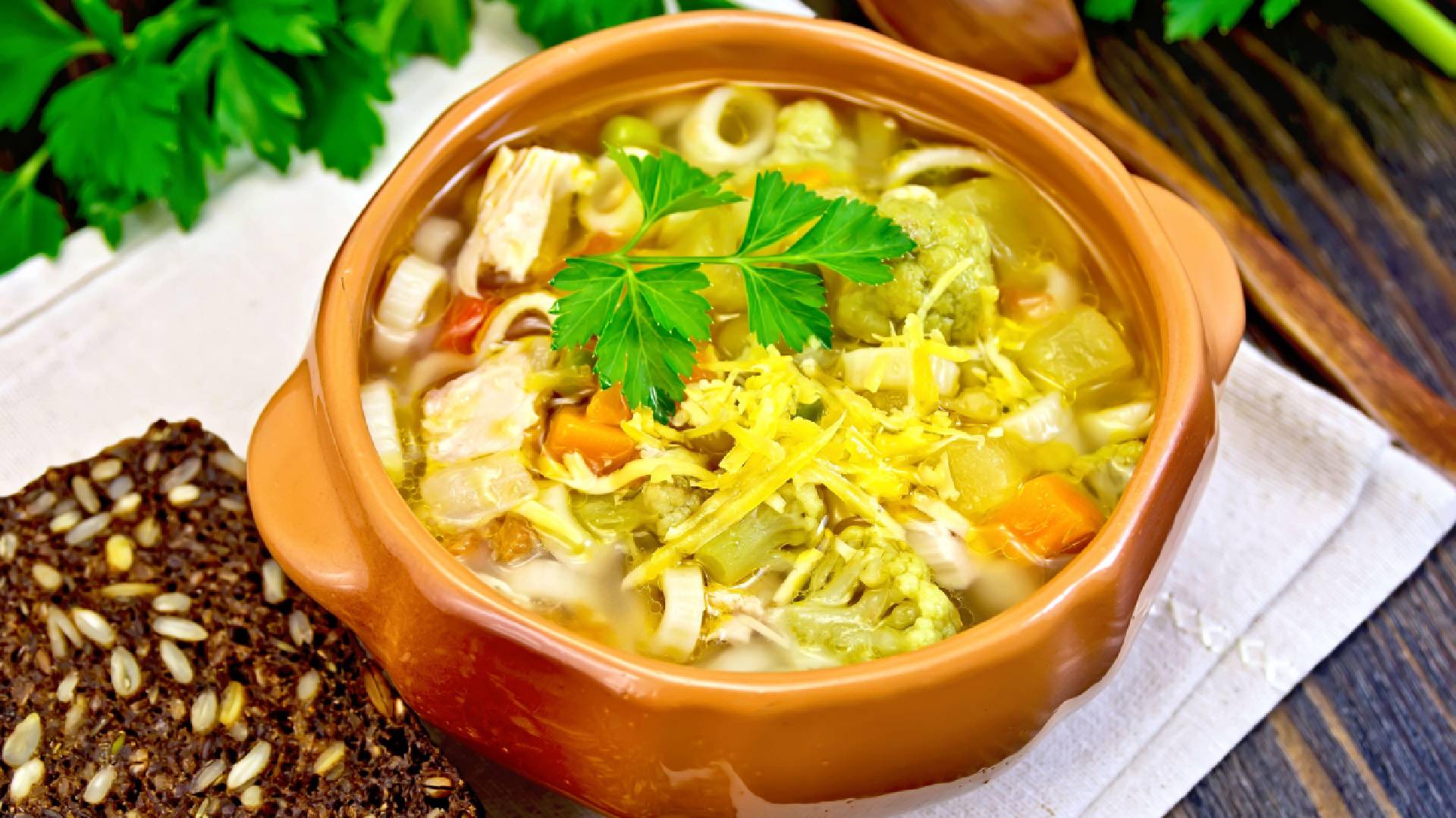 Традиционно гороховые супы готовят с картофелем. Но в этом блюде его заменили сушеные грибы и другой популярный овощ. Вкус стал еще лучше, а вот пользы прибавилось. Теперь яство отлично подойдет всем, кто постится или соблюдает диету.