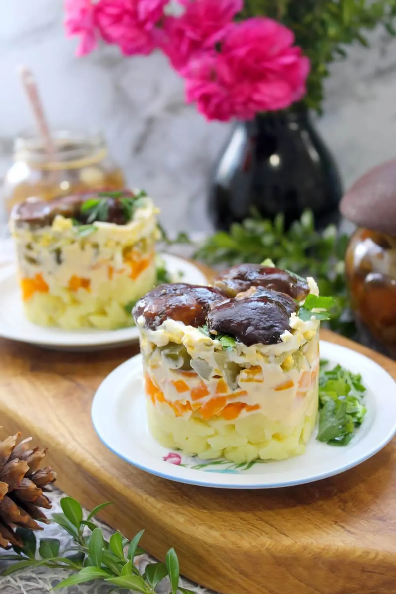 Слоеный салат с лесными грибами — это не просто еда, а настоящий кулинарный опыт, который надолго запомнится вашим близким. Удивите их вкусом и текстурой этого замечательного блюда!