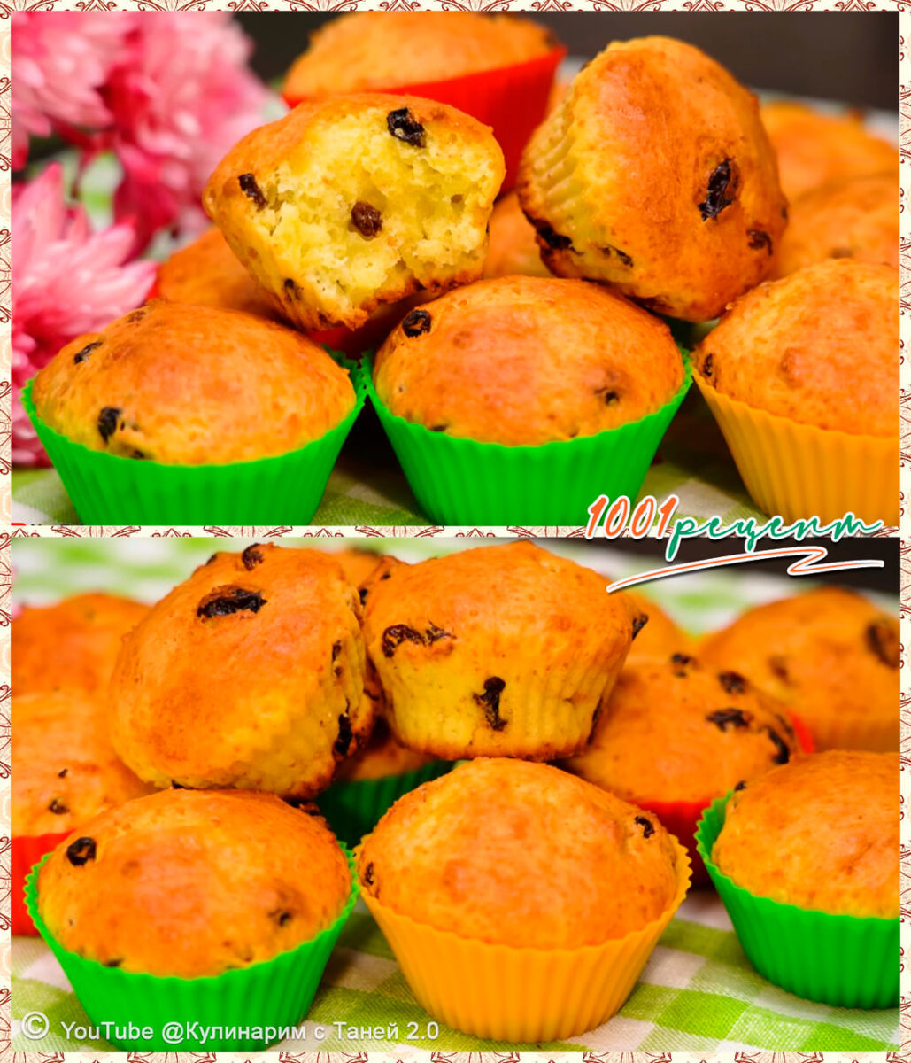 - Творожные кексы с изюмом: нежные и воздушные, идеально подходят для завтрака или легкого перекуса.