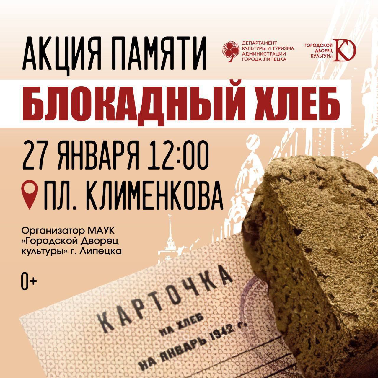 В этот день в Липецке пройдет акция «Блокадный хлеб». Приглашаем всех желающих присоединиться и вспомнить о том, как много отдали наши предки ради свободы и будущего для всех последующих поколений.