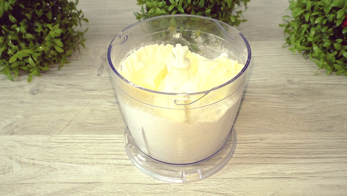 Сначала смешайте муку с разрыхлителем, а затем добавьте холодное масло и быстро перемешайте до образования крошки. В отдельной миске взбейте яйцо с солью и сахаром, а затем соедините с крошкой. Быстро соберите тесто в ком, добавляя при необходимости холодную воду. Охладите тесто в холодильнике.