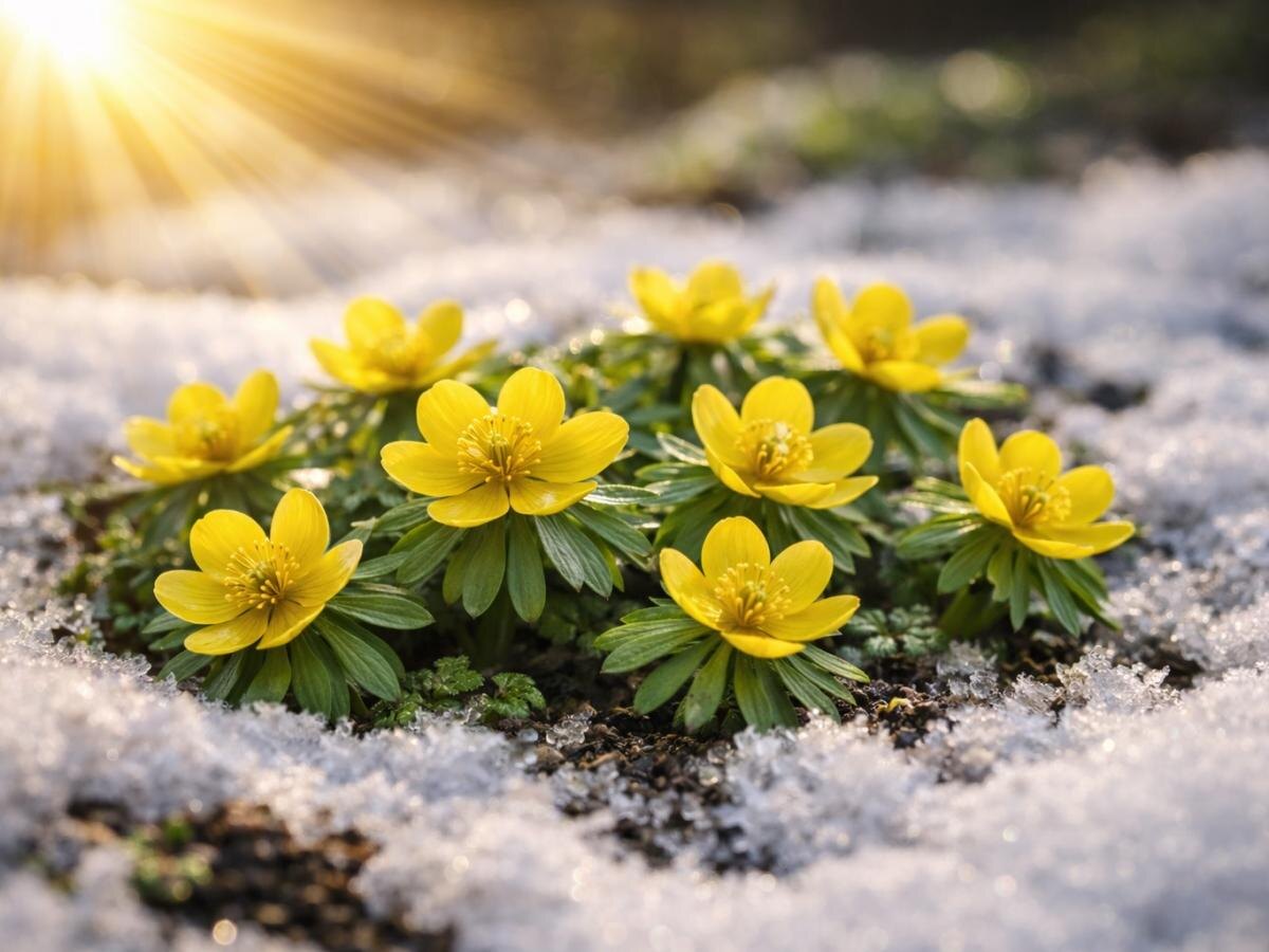 Когда сад кажется ещё спящим под снежным покрывалом, волна света уже может выглядеть как явное обновление. Маленькое растение с ярким жёлтым пятном наверху пробивает почву и превращает унылый участок в живую дорожку тепла. Без лишних хлопот весенник быстро образует плотные куртины и напоминает о том, что весна начинается раньше календаря.