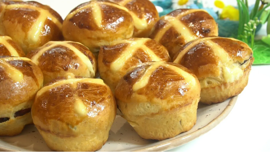Формирование начинается с деления теста на небольшие шарики, которым дается время подняться в формочках. Затем готовят легкое тесто для рисунка крестиков и наносят узор перед запеканием. Финал приносит мягкость и декоративную нотку, которая приятно сочетается с чаем или молоком.