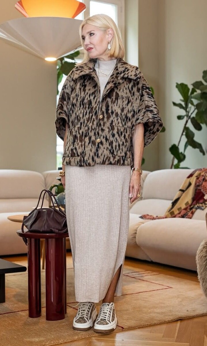 Небритый костюм из трикотажа и спокойные цвета создают основу для многослойности и вариативности. Достаточно добавить деталь из фактурной ткани или акцентный платок, чтобы выглядеть по?новому без кардинальных изменений гардероба.