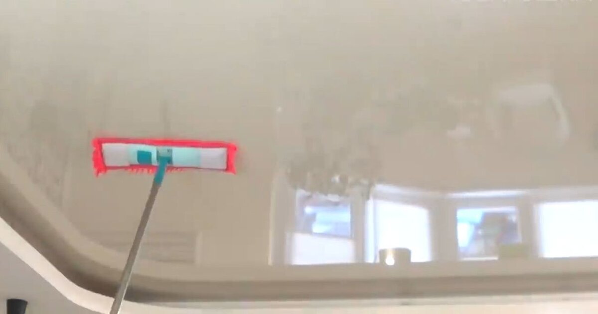 - Согласно принципу "сверху-вниз", убираем пыль с потолка и плинтусов. Для этого подойдут мягкая щетка на длинной ручке и швабра с текстильной насадкой.