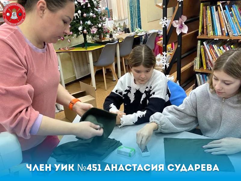 Члены участковых комиссий 381, 420, 433, 448, 451, 3733, 3745 проводят благотворительные ярмарки, акции Пишу тебе, герой и Новогодний подарок солдату. Проводят мастер-классы по шитью шарфов, плетению маскировочных сетей, созданию открыток и талисманов.