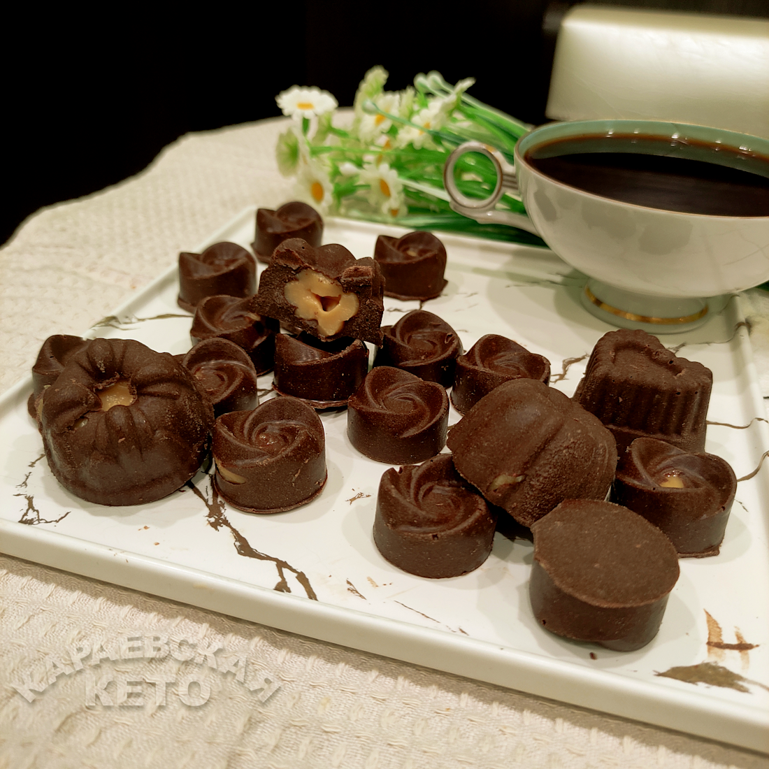 Шоколадные конфеты в кето-варiante становятся всё более популярными, благодаря своей низкой углеводной ценности и восхитительному вкусу. Сегодня представляем лёгкий рецепт шоколадных конфет, которые готовятся с натуральным молочным шоколадом и вареной кето сгущёнкой. Эти лакомства не растают при комнатной температуре, но для долгосрочного хранения лучше помещать их в холодильник.