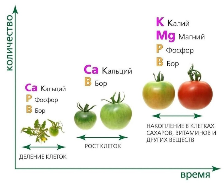- Бор: отвечает за формирование завязей.