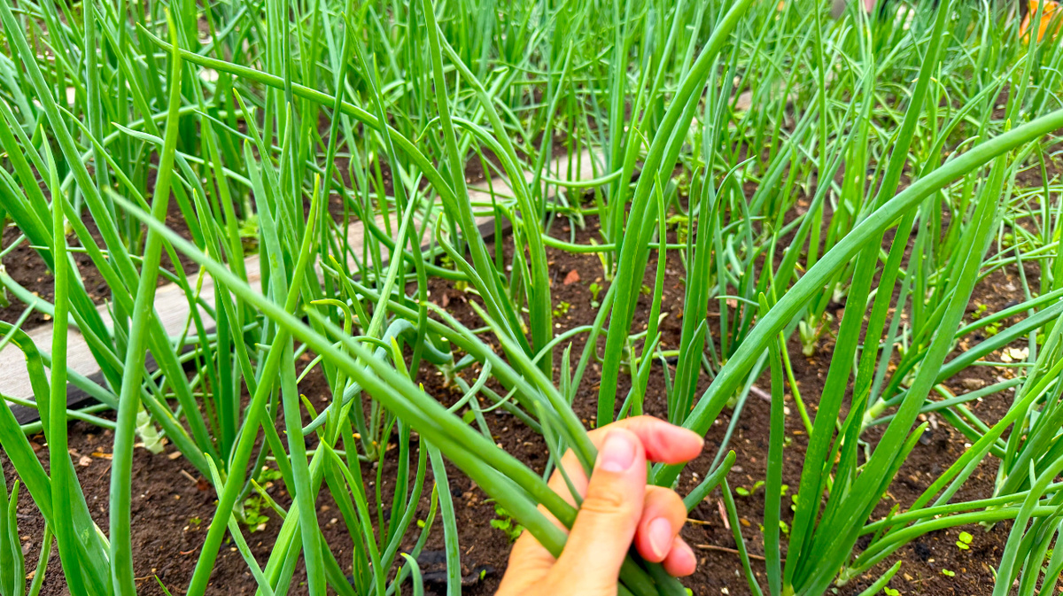 Привычные грядки превратились в зелёный островок — лук радует свежим видом