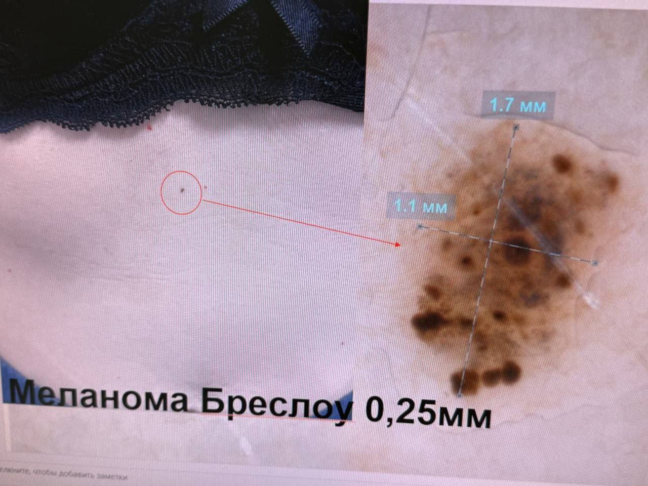 Образование было очень маленьким, всего 1,7 мм. Но доктор Сергей Якушенко определил, что это рак. Опасную родинку пациентке оперативно убрали.