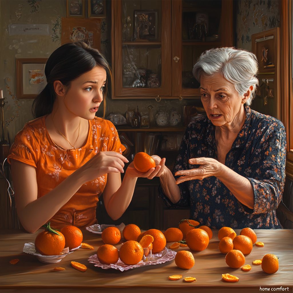 На кухне Нины раздаётся аромат свежесваренного кофе, когда она срочно очищает мандарины от их сочной, оранжевой мякоти. Однако, её поступок вызывает недоумение у свекрови, Людмилы Ивановны, которая останавливает её, когда очередная кожура собирается отправиться в мусорное ведро.