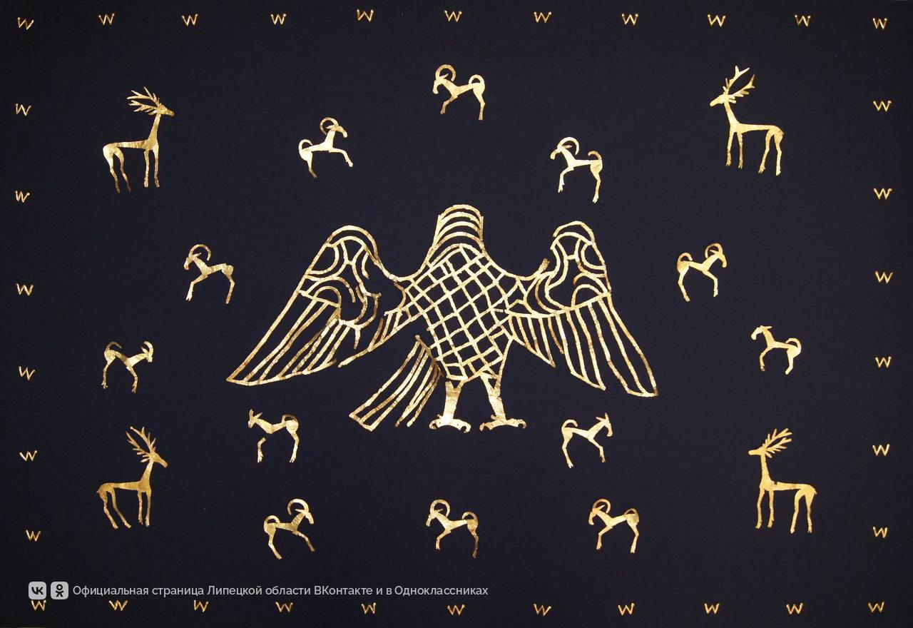 Золотого орла на тёмной парче нашли у села Ленино Липецкого округа в 2005 году, раскопав захоронение знатной женщины.