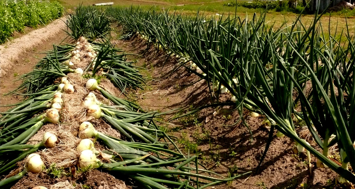 Когда пора утолщения: 10 л воды, 2 ст.л. сернокислого калия и 1 ст.л. мочевины (или навозная жижа/куриный помёт разведённые). Помогает луку «набирать массу» в головке.