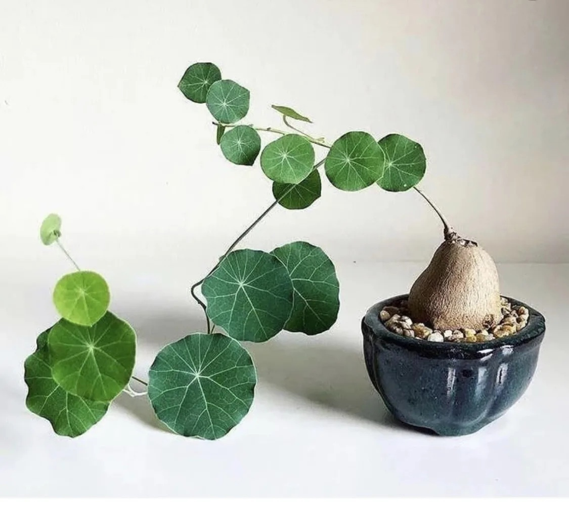 Стефания — не просто забавный «булочка-клубень». У неё красивые листья, напоминающие маленькие зелёные тарелочки, с изящными жилками, которые гармонично контрастируют с массивным клубнем. Эта экзотика непременно привлечет внимание любителей необычных растений.