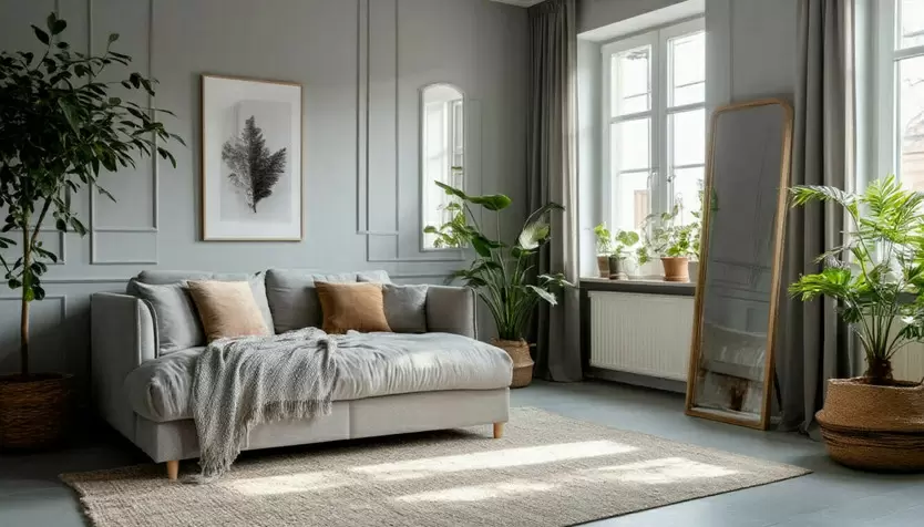 - Большое зеркало: Один из простых и эффективных способов сделать комнату визуально больше и светлее — добавить большое зеркало. Это не только отпразднует свет, но и создаст иллюзию простора.
