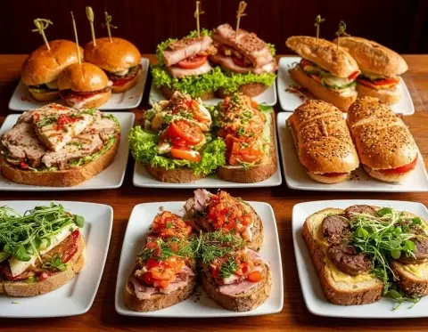- Горячие бутерброды: Запеченные варианты, такие как с колбасой и сыром.