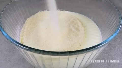 Кефир комнатной температуры соединяют с манной крупой, давая смеси настояться. Масло с сахаром взбивают до лёгкой воздушности, по одному добавляют яйца и снова взбивают. Затем кефирно-манная смесь постепенно перемешивается с масляной базой. Муку добавляют порциями, чтобы тесто вышло однородным. Щепотка соли, разрыхлитель и ванилин добавляют характерный аромат.